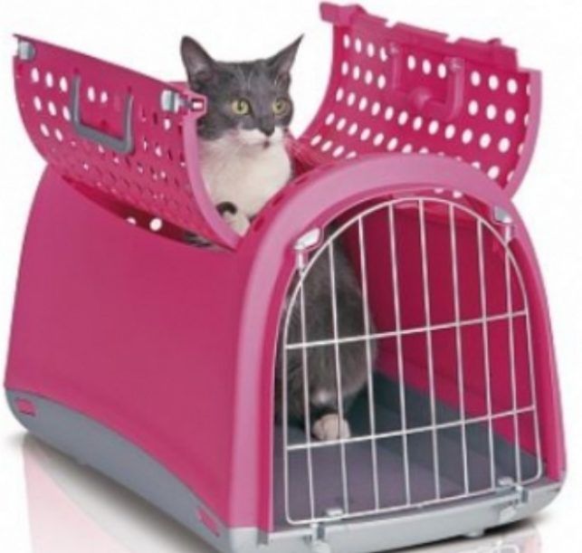 The plastic model of the SAVIC Retro TROTTER 1 cat carrier, in a delicate pink color, costs 1,500 rubles and is perfect for traveling by car and by train. In such a carrier, the animal will feel comfortable while going to the vet or traveling to the country.