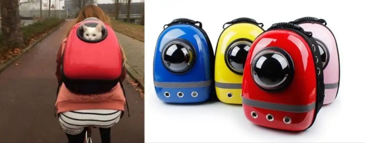 Carriers in which the animal's head is completely open have proven to be poor. Even with a carabiner on the bag that holds the collar, there have been cases when cats managed to twist and harm themselves.
