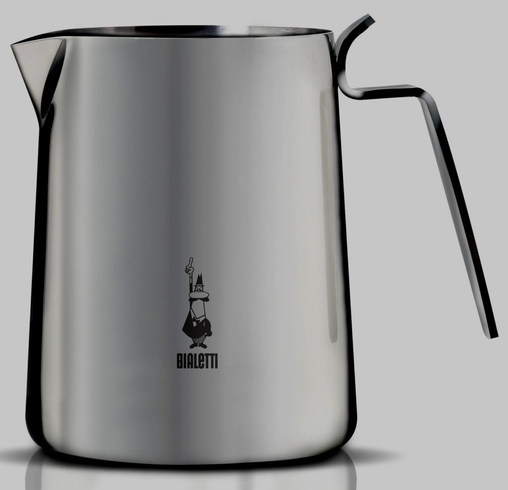 High quality and durable milk jug. In the manufacture of stainless steel is used. Withstands shock and significant temperatures. Gives out a rich foam quickly enough. It is appreciated for a variety of bowl volumes and an affordable price.