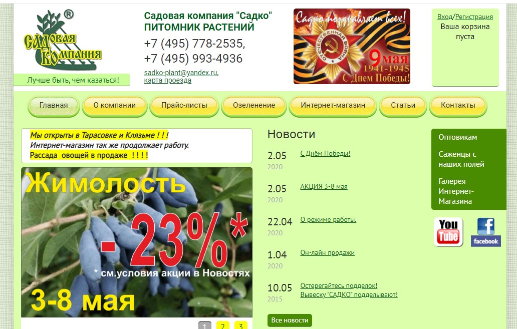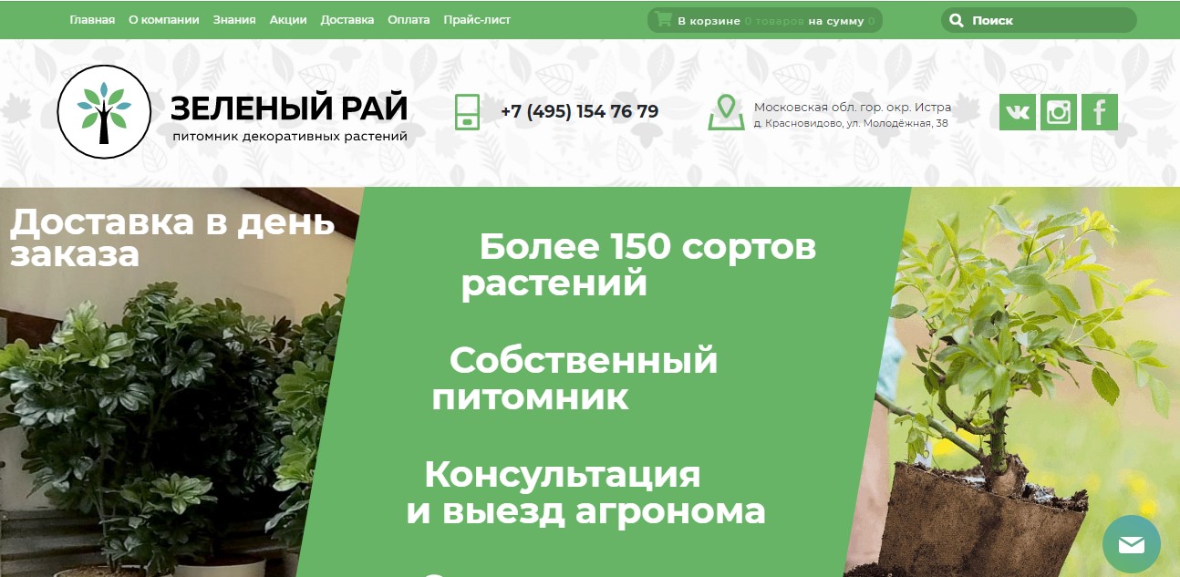 One of the largest nurseries in the capital, delighting gardeners with its quality products. According to the company, the sales coverage extends to more than 500 small settlements in Moscow and the Moscow region. Among those who actively use the services of this enterprise, there are eminent stars of show business, whose video reviews can be studied on the website.
