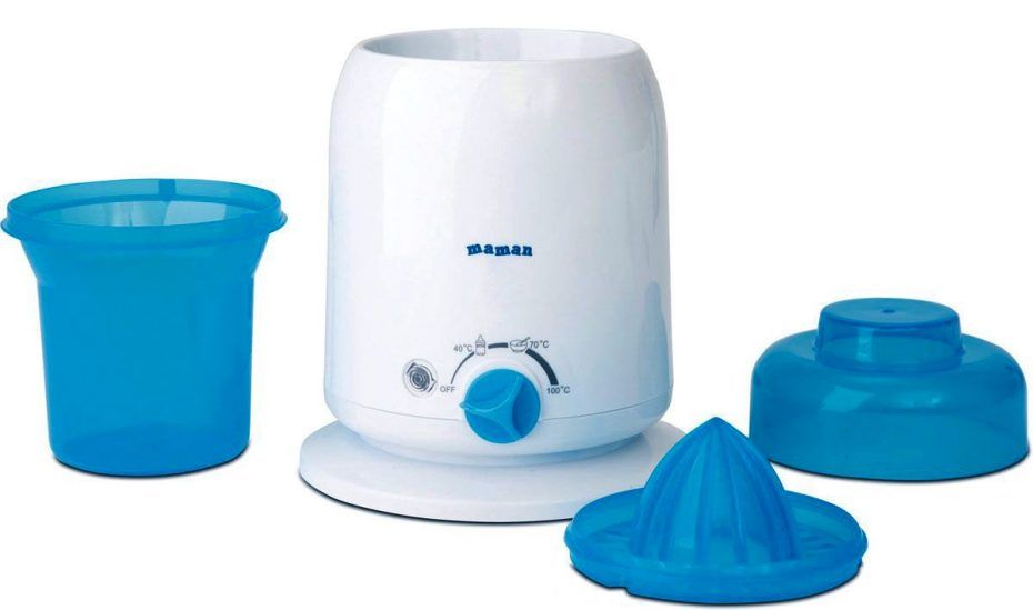 An inexpensive, compact and practical to use heater from a Chinese manufacturer is equipped with all the necessary features, including sterilization. Mechanical control will allow you to independently adjust the temperature from 40 to 100 ° C using a special handle. The device is protected from overheating, turns off automatically, is able to maintain the desired temperature. A convenient addition is the lift-style holder to assist in the removal of containers. The package includes a glass for heating food and two lids: for sterilization and to prevent water boiling away.