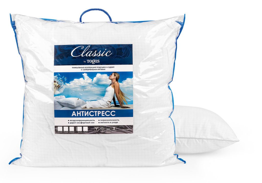 To create Classic by Togas Antistress, a special fiber is used as a filler, which is pre-treated with silicone, and the quilted cover is made of microfiber. Thus, the composition does not lose its shape, does not collect into lumps, and at the same time it is elastic, soft and very light. Manufacturers have made sure that the human body feels comfortable while sleeping.