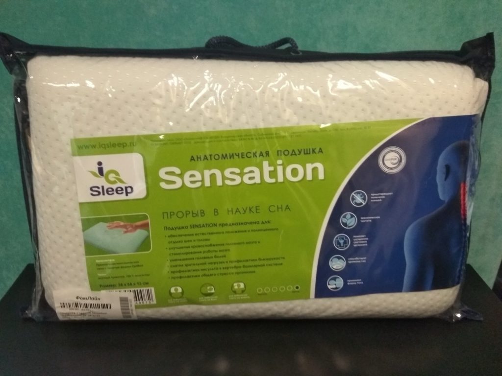 The IQ Sleep "Sensation" model has an anatomical shape and combines factors such as comfort during sleep, long period of use, and maintaining the correct head position. A special OPTIREST foam is used as a filler, which has a memory function, and polyester is used for the manufacture of the cover.