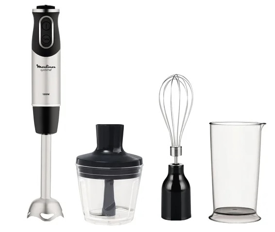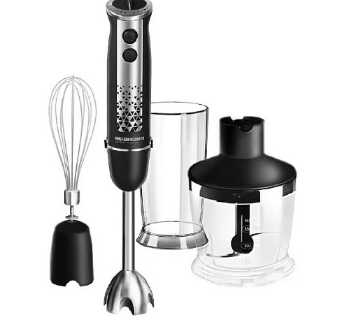 The presence of a whisk and chopper expands the functionality. The metal immersion part is durable and reliable.