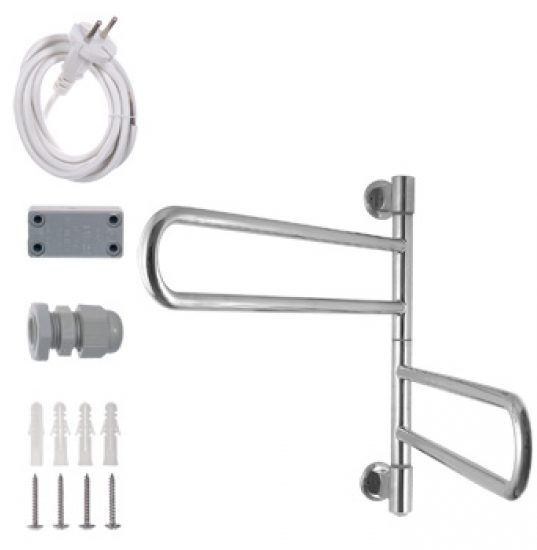 This electric towel warmer features the ability to rotate the sections 180 °, which makes it convenient to place clothes of different sizes on it. Has the ability to open and hidden connections.