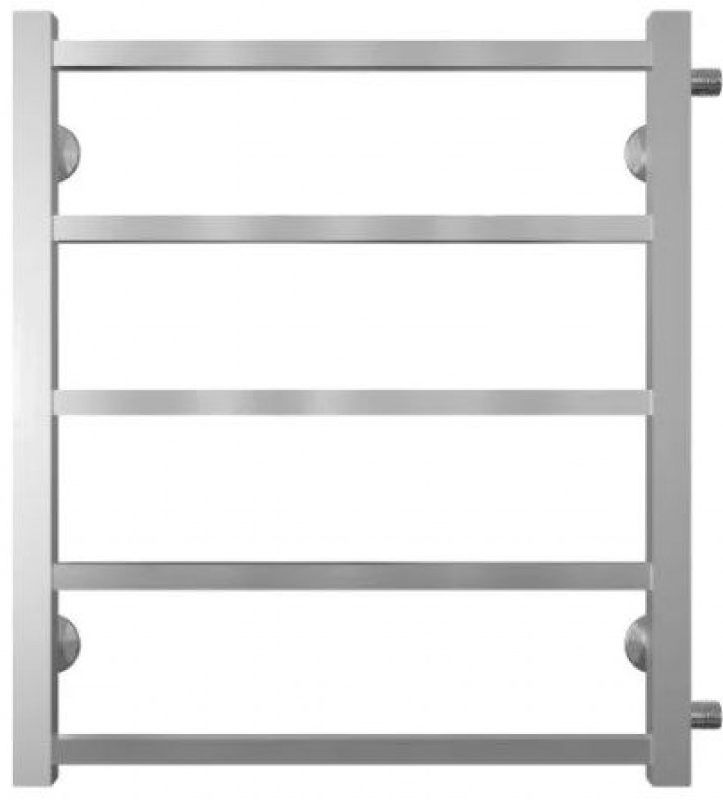 According to the manufacturer's description, this is a ladder type water heated towel rail with side connection. It has 5 sections and is capable of heating a room up to 2.3 square meters. The device is connected to the hot water supply system, and according to the recommendations of specialists, it should not be connected to the heating system due to the small wall thickness of the product. Due to the high temperature of the coolant (110 ° C), it can be used in any central or autonomous water supply system.
