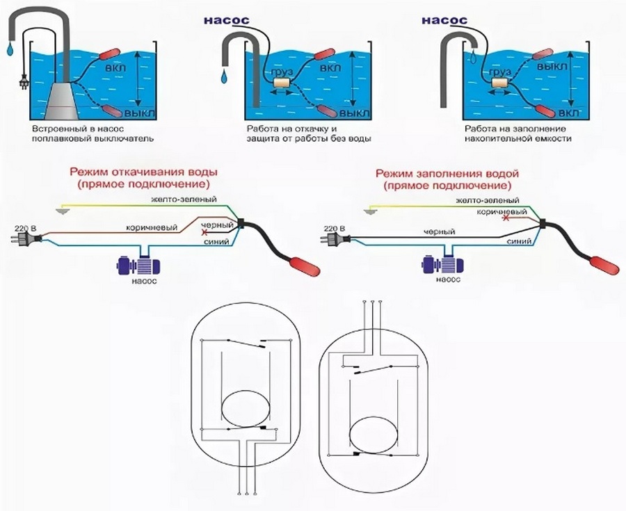 It is possible to correctly mount the float switch in several ways. However, first of all, you need to make sure that the current directed to the consumption of the pump is less than the maximum required and specified in the operating instructions for the float.