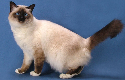 The appearance is similar to 4-5 month old kittens. Coat color, eye color and character resemble Thai cats. Miniature cats inherited their short ponytail from Japanese bobtails. Weight: 0.9 - 2.0 kg. Price - from 70 - 90 thousand.