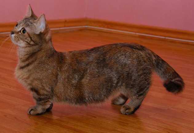Analogues of munchkins among dogs are dachshunds. Short-legged dwarfs appeared in the middle of the 20th century as a result of natural mutation. The perfectly healthy cats had unusually short legs; they first appeared in the USA and Great Britain. The name of the breed comes from the name of a small nation in the Wizarding Land of Oz, the author of the work was Frank Baum. The weight of males ranges from 2.7 to 4 kg, and of adult females - from 1.8 to 3.6 kg. The smallest representative of the Munchkin breed was recognized as a cat that bore the nickname Lilliputian. The height at the withers was only 13.34 centimeters. The copy is listed in the Guinness Book of Records.