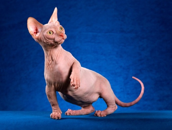 Long tail, short front legs, partial or complete absence of hair are characteristic features of the species. Cats have a lot of energy. They are mobile, at the same time very affectionate to the owners and people around them, trusting.