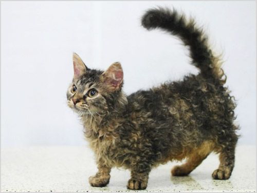 Amazing cats bred as a result of crossing munchkins and laperms. The resulting species inherited short legs and curly hair from their ancestors. Sometimes they are called "cat lamb". The symbiosis of the two breeds gave excellent results. Interesting specimens with long and wavy hair turned out. The average body weight of cats ranges from 2.2 to 4 kg, females weigh from 1.8 to 3.6 kg.