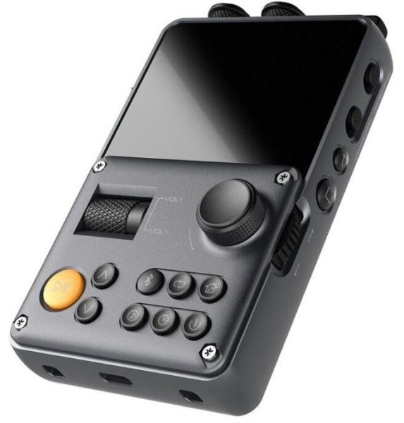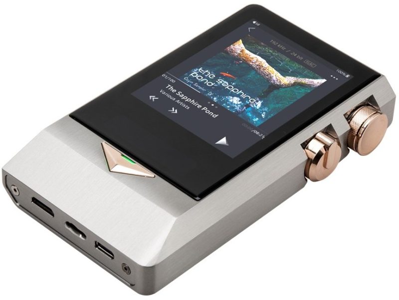 The most expensive Flash player with Hi-Fi functions has a solid steel frame, LCD screen - color, touchscreen, with a diagonal of 3.2 inches, a resolution of 360x480. The gadget is designed without a single sharp corner, the appearance is platinum color, golden buttons betray luxury and vintage style. For all the external solidity, the unit has the usual technical parameters. The internal memory of 128 GB can be expanded with a 512 GB card. The kit contains a branded leather case, coaxial adapters from USB type C to a 3.5 mm mini-jack and RCA, 4.4 mm to 2.5 mm adapters, 2 XLRs. The installation reproduces almost all formats, the sampling rate of files corresponds to 32/384. The watch is a special feature. If the headphones are connected to the unbalanced output, you can choose between a tube amplifier or a solid state amplifier. The watch is a feature of the model.