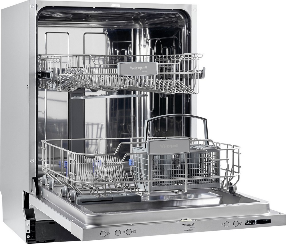A full-sized device that will become a companion in any kitchen. The basket holds 12 sets. For cleaning with the standard program, 11 liters of water are used. The energy efficiency of the model corresponds to the A ++ class. The build quality is high. The inner chamber is made of stainless steel, the body of the model is also not subject to corrosion. The control is carried out using the display. The user can independently select the mode, of which there are 5 in the product.
