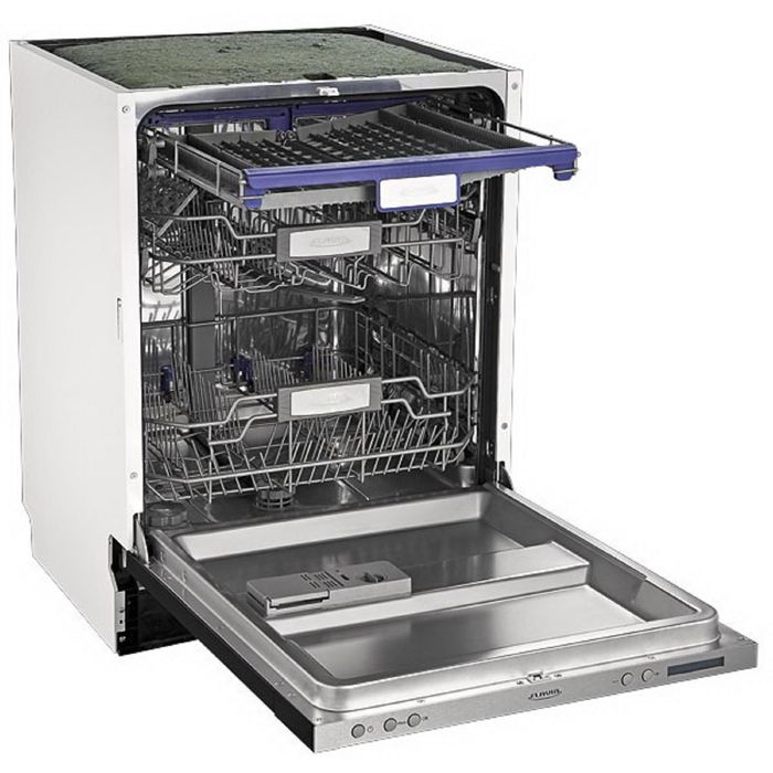 The model is fully integrated and does not take up much space. Suitable for 13 kitchen sets. Control is performed using electronic buttons. The water consumption is 11.5 liters. Washing is carried out using 4 programs. Lightly soiled dishes can be washed with a partial load. The snooze timer can be set up to 24 hours.