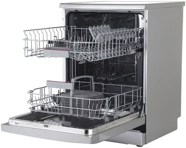 The full-size dishwasher can load up to 13 sets in one go.The energy class corresponds to A +. The water consumption for a standard washing process is only 11 liters. Cleaning can be carried out using 5 modes, including disinfection using water, the temperature of which is more than 70 degrees. The height of the basket is adjustable depending on the type of kitchen product, which allows different sizes of appliances to be installed.