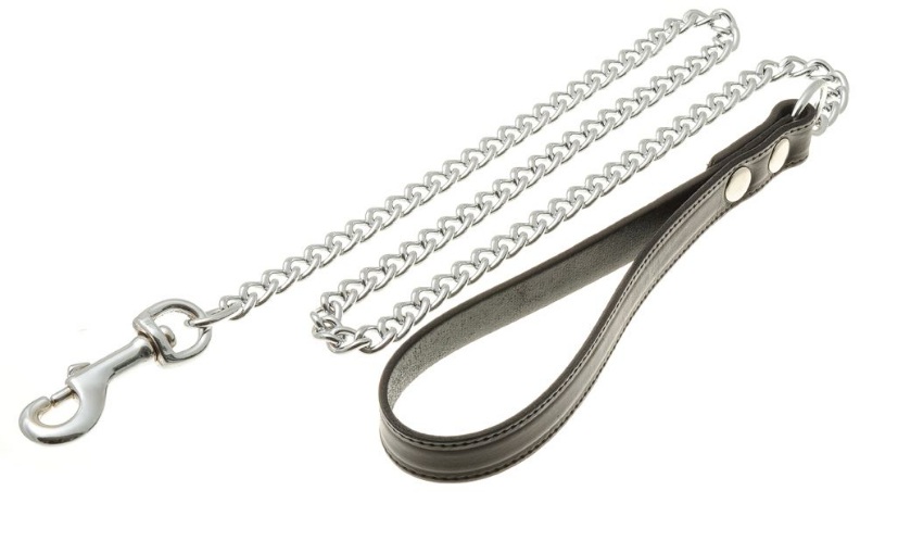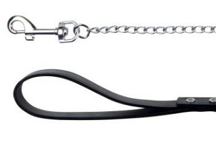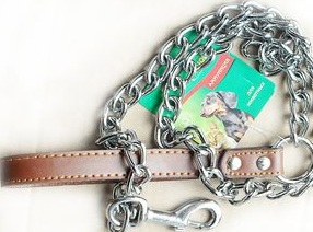 The leash-chain is made of welding chrome-plated links and rings. The chain is straight, not twisted. The loop is made of genuine leather. Basically, the product is used for daily walking, but it is also suitable for training.