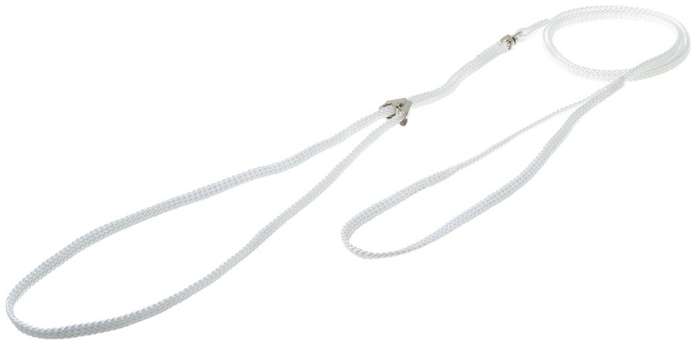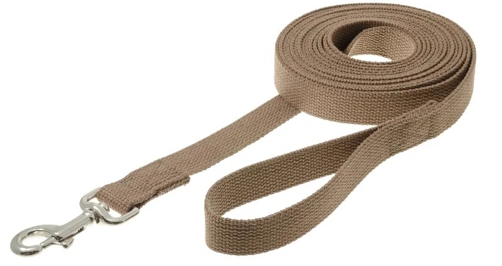 The harness leash is used for walking and training. Most often, this is an ordinary tape made of durable material, at one end of which there is a loop, on the other there is a carabiner for connecting to a collar. For large breed dogs, a strap leash is better (especially during training).