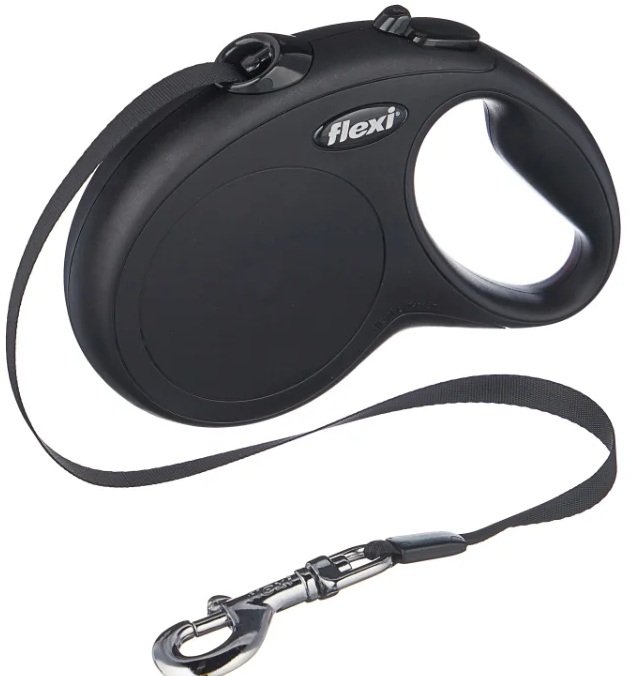 The peculiarity of the model is the correspondence of the belt to the color of the tape measure, the non-standard configuration of the handle with a soft rubberized grip. The mechanism for fixing the length of the tape is able to withstand any load from the animal.