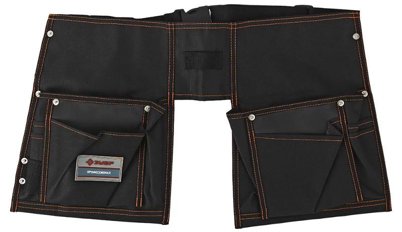 The domestic manufacturer offers a holder for a screwdriver and other tools of strong quality at an adequate cost. The holder is made of nylon-based material and has 13 compartments. The nylon-based material of the 38654 is notable for its strong structure, light weight and impressive density. Separate compartments are responsible for storing hand tools such as a hammer. A special clip is integrated into the belt for attaching large-sized tools. The total length of the belt will be 1.1 m with compartment sizes from 22 to 26 cm.
