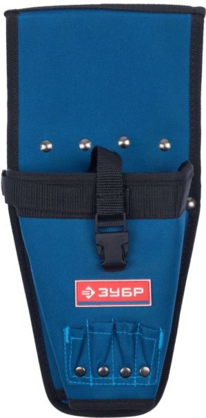 The pouch from the well-known brand in the construction industry, Kraftool, offers high quality material and well-thought-out ergonomics of the space for tools and auxiliary elements. The material from which the pouch is made traditionally for the brand is of high quality and is capable of impressive strength indicators. The main element in the manufacture of this model is polyester of a special density, which allows using the pouch for a long time without the appearance of defects. The manufacturer claims that the holster is moisture resistant to high sealing standards. Due to the specific properties of the polyester used in the manufacture of this pouch, the master will not face the problem of laborious cleaning, the holster is cleaned without any obstacles. The model demonstrates high indicators of wear resistance. The manufacturer allocated 4 compartments with an impressive volume for storage of removable equipment. In addition, the holster has a Velcro patch for attaching an additional harness compartment. The firm fit of the screwdriver is provided by a special buttonhole on the fastener. The dimensions of the holster are 205 mm high, 330 mm long and 50 mm wide.