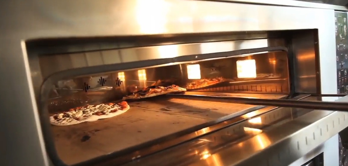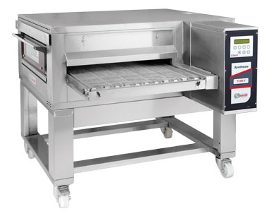The structure is equipped with stands on wheels, thanks to which it is convenient to move it if the need arose. The patented hot air flow system ensures an even distribution of heat, which prevents excessive overdrying of the product, which means that the pizza is baked at a lower temperature than conventional ovens, thereby saving energy consumption.
