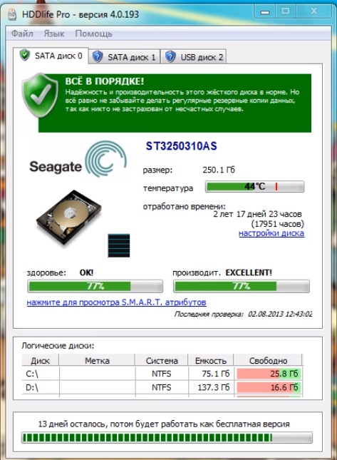 The program works great with any version of the Windows operating system. You can use HDDlife free for 14 days, after which you can purchase it on the official website. The average price is 550 rubles.