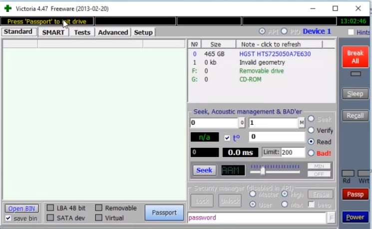 This is one of the popular programs for working with low-level hard drives. It is small in size, but fraught with great power. With its help, you can not only test the drive, but also manage SMART attributes, read sectors, manage the password system and change the size of the HDD.