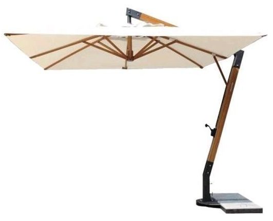 Another manufacturer of wooden models of umbrellas that are used for recreation. He can be attributed to the favorites of this review, because he will surely not leave anyone indifferent. Its large size is impressive. A single beige color was chosen for the large rectangular dome. The sample is made of wood, except for the fabric dome.
