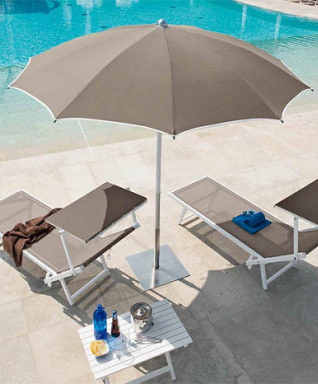 This model is distinguished by its elegant appearance and lightness. Manufacturers have moved away from the idea of ruffles on the dome. In this regard, the umbrella is universal in its application. Those. It can be positioned both above the sun loungers with guests, and above the usual folding tourist chairs.