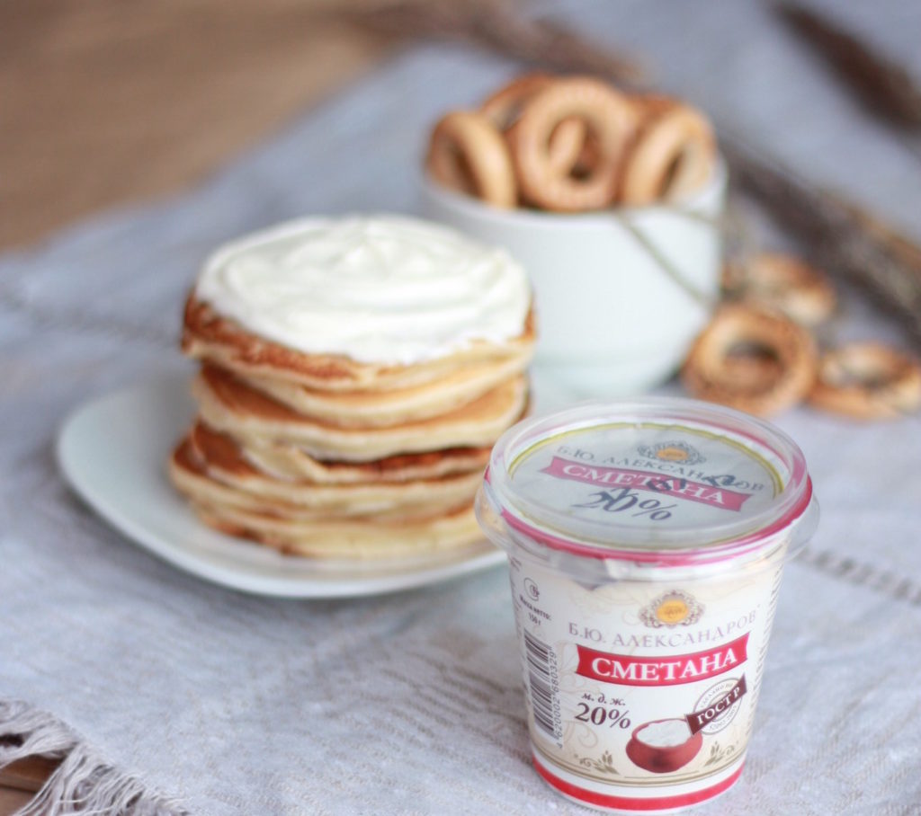 On store shelves, sour cream of this brand can be seen in plastic glasses covered with foil film. The two week shelf life proves that the product is completely natural. Sour cream can serve as an addition to borscht, soups, pancakes, dumplings, cheesecakes, or it can act as an independent dish. It is also often used as a base for sauces.