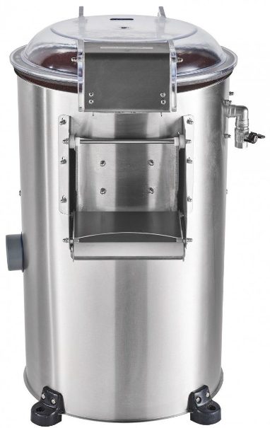 Another Italian potato peeler, which distinguished itself by its parameters and qualities. She, like previous models, is able to peel not only potatoes, but also other root crops. There is a possibility of connecting to the water supply. The machine is made of stainless steel, the plate that cleans the roots consists of silicone and aluminum. A window is located at the top, it is made of glass, so that a person can monitor the entire process and, if necessary, adjust it. The ratings are generally good and the buyers are happy with this product. Emphasis is placed on productivity, material quality and processing.