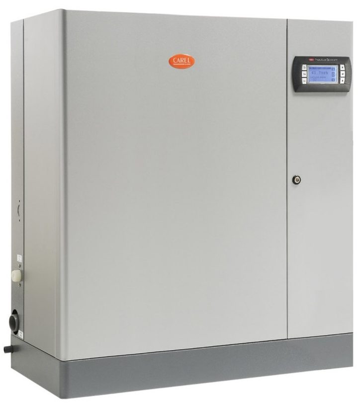 The country of origin of the unit is Italy. The weight of the model is only 44 kg, which makes it a convenient device for moving around the rooms. PUV consumes 48.75 kW. 2 steam distributors will humidify evenly large areas. Pressurized air is mixed with steam. Management is carried out using a small panel. The monitor displays all selected functions as well as the steam supply temperature.