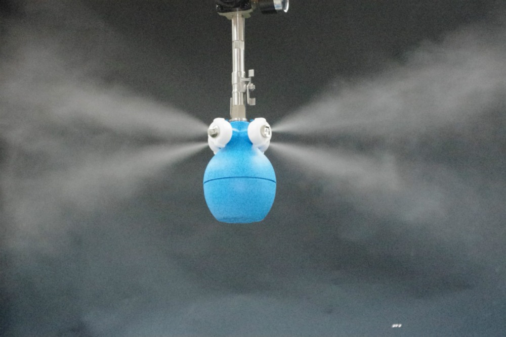 The system can be used for large areas. The efficiency of the installation is achieved by spraying small particles of liquid. The size of one drop is no more than 10 microns. The systems can be used not only for closed rooms, but also for open areas. Thanks to this type of installation, energy and water savings are achieved. Particles of liquid are distributed through the air, moisturizing it for a long period.