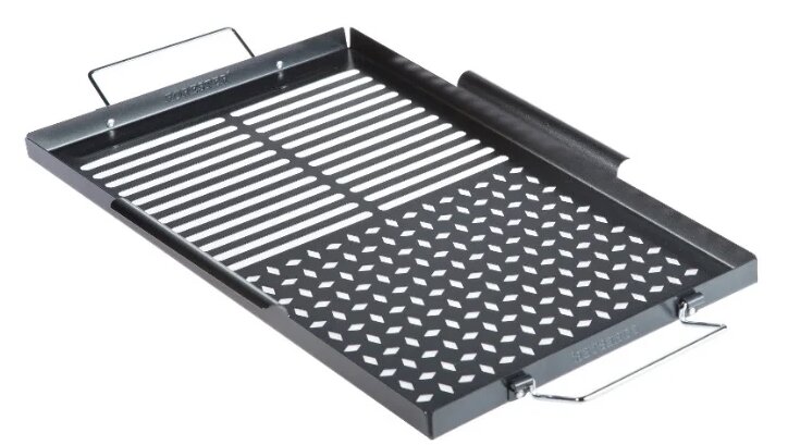 Products are made of metal - stainless steel, cast aluminum. They differ in the presence of handles, sides of different heights. The surface of the bottom can be with projections (grill pattern), perforated sides, bottom. Used over an open fire (barbecues, grills). Expensive options can be used on stove surfaces (two burners), ovens (electric, gas).