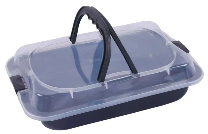 Lid - translucent, plastic, two black plastic handles on the top side. Convenient side latches secure the lid securely to the baking sheet.