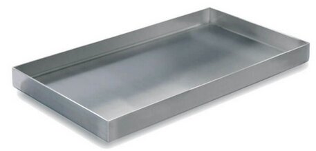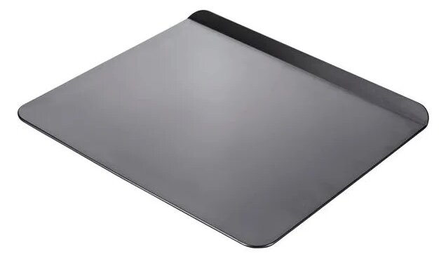 Rectangular black sheet. Side only on one side. It is recommended to bake dishes (cookies, buns, cakes) that do not allow juice, filling, fat. It can be used as a pallet for non-standard shapes. It is used in various types of ovens - gas, electric, convection.