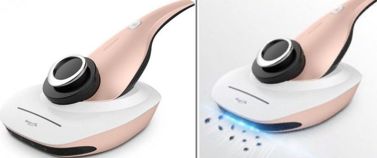 The peculiarity of this model is the surface sterilization with ultraviolet rays. It is based on a cyclical filtration system, which does not allow even the smallest organisms to escape from the device. A hot air stream is used to clean upholstered furniture and beds. The device removes dirt even in crevices and furniture filing. It can also be used to clean carpets. Works from the network. The cord is long enough for the entire room. There is a power button on the handle, and during cleaning the device glows in two colors: red - the air flow is hot, blue - the air flow is cold.