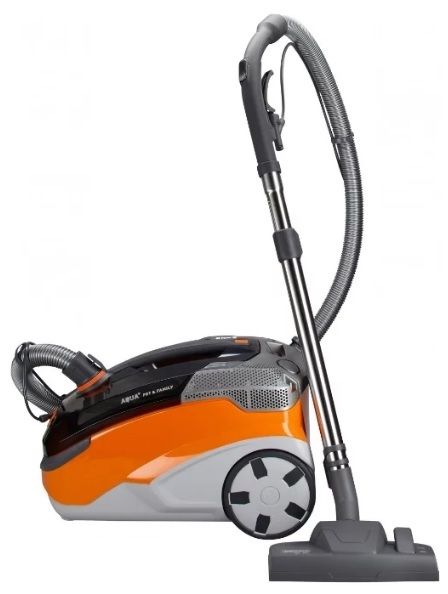 In addition, the model with an aquafilter is equipped with two attachments that allow you to suck out debris from crevices in upholstered furniture and handle small items such as armchairs or car seats. The body is plastic, yellow-black. The vacuum cleaner is equipped with a defoamer, a HEPA 12 filter, a telescopic suction pipe, a foot switch, a container for storing nozzles and an automatic rewinding of the power cord.