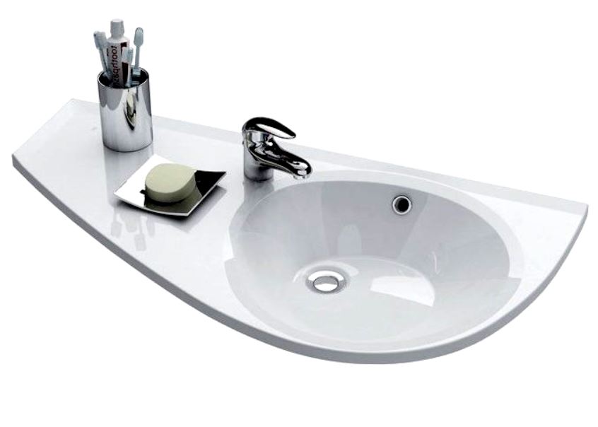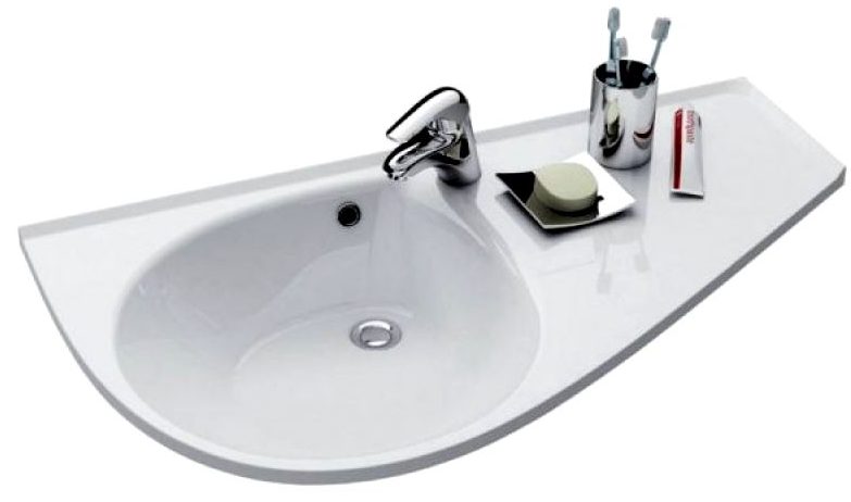A model of a domestic manufacturer that will help save the maximum amount of free space in a small room. Installed above the washing machine. Based on their declared characteristics, the main material (porcelain) will last a long time. In addition, it is resistant to mechanical and other damage. It is unpretentious in leaving and does not require special attention. There is space on the sides for personal hygiene items. Attached to the wall with a bracket supplied by the manufacturer.