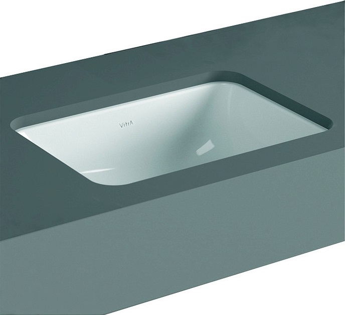 The rectangular sink has a stylish look. As in most cases, plumbing faience is used for the manufacture of the structure. There is a tap hole in the central part. There is no connector for overflow. Dimensions: 40x48x22 cm.