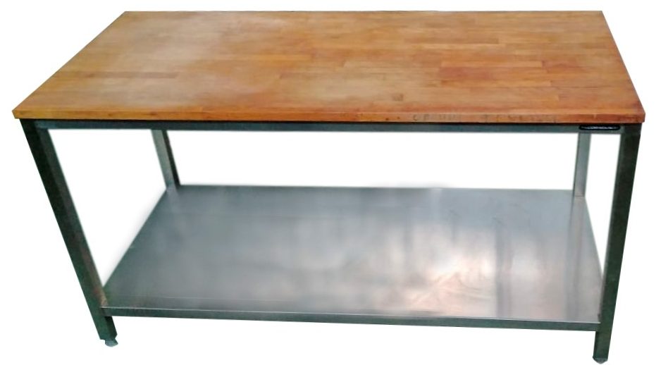 The furniture frame is made of stainless steel. At the bottom there is a solid shelf, which is often used for storing food and kitchen utensils. The table top is made of durable treated wood. The thickness of the tree is 40 cm. The table top is a solid oak board that will last a long time.Manufactured in accordance with all sanitary and hygienic standards. Before being sold, the device undergoes various checks that guarantee quality for a long period.