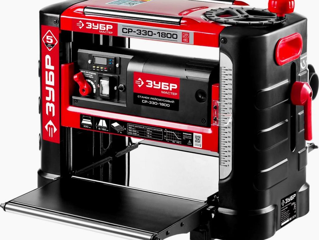 Russian compact equipment with an electronic indicator. Place of manufacture - China. Differs in ease of operation and compact dimensions. It belongs to the portable type. Can handle average volumes while maintaining the quality declared by the manufacturer. Millimeter scale and electronic indicator allow you to control the accuracy indicator of compliance with the working width. The revolving handle allows you to adjust the planing depth from 1 to 3 mm.