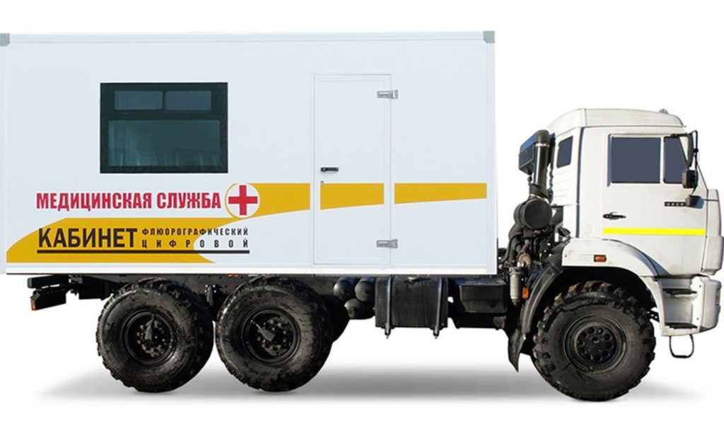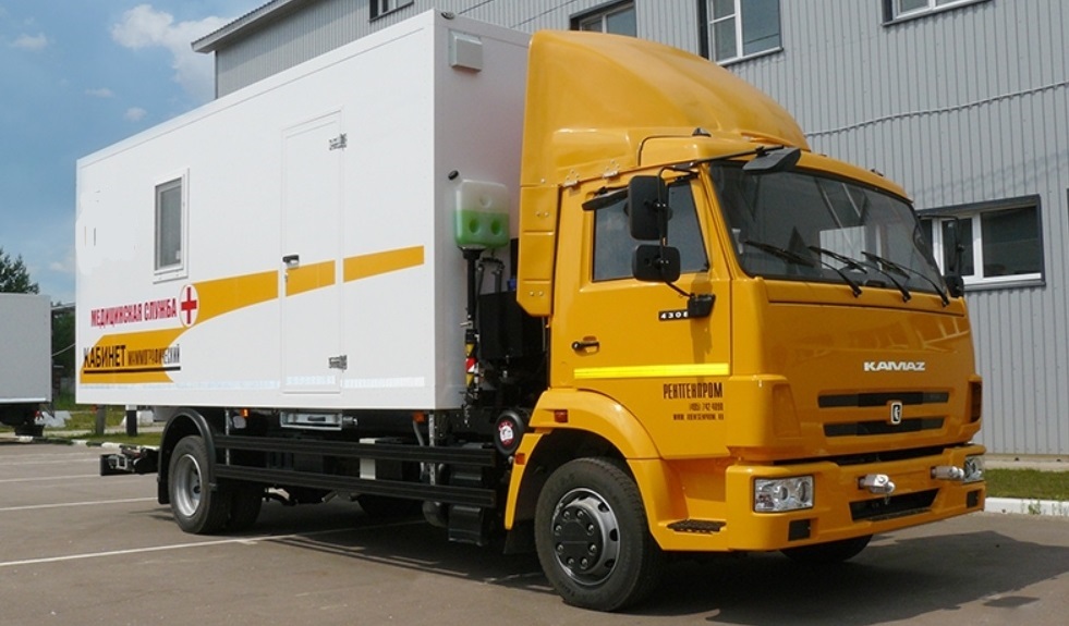 The best models of mobile fluorography cabinets are installed on the basis of the KAMAZ-4308 chassis and the KAMAZ-43502 and KAMAZ-5350 all-terrain vehicles.