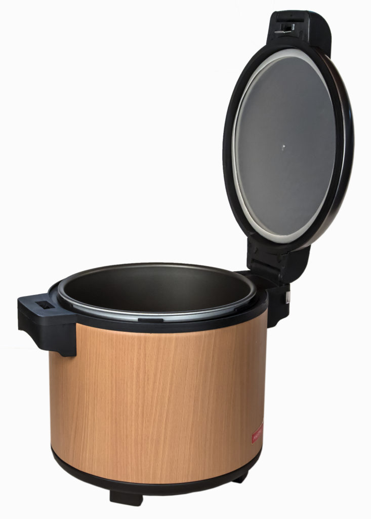 The model is intended for professional use. Thanks to the large bowl, a large amount of finished product can be obtained in one preparation. The body is made of metal. The 5.6 liter bowl is made of stainless steel and will last a long time. The control panel has a special toggle switch for temperature control. Also on the panel there are two indicators of the device's start-up and a light that notifies that the product is ready. The device also has an automatic rice heating function. The power of the device is 1900 W, so the water boils in a short time.