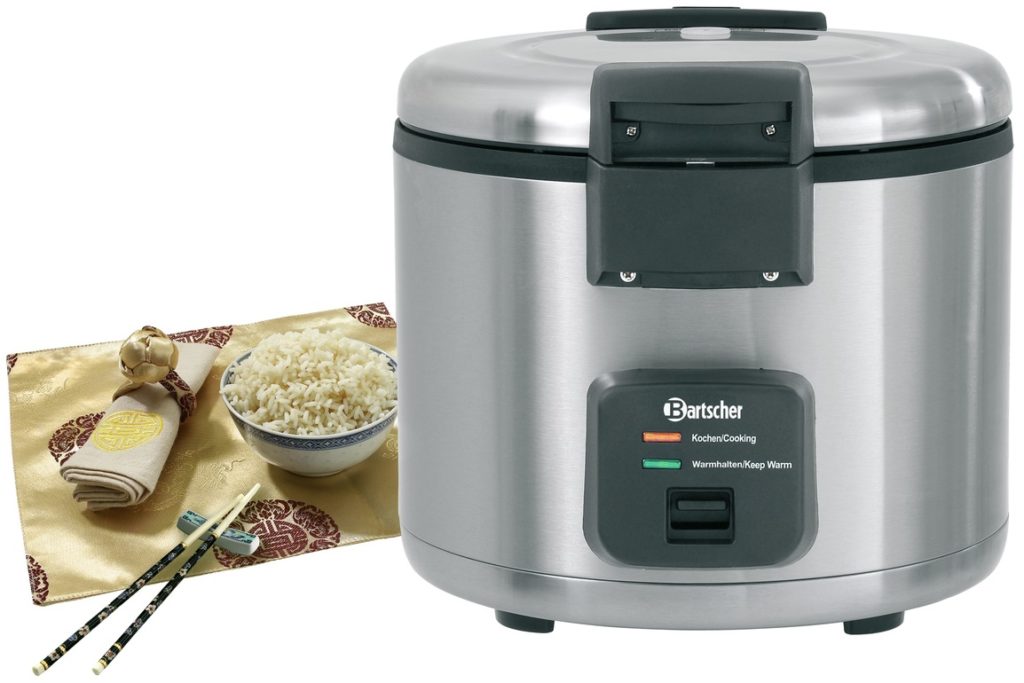 The kitchen appliance can be used for catering or home use. The device comes with a special spoon that does not damage the non-stick layer and a measuring spoon for rice.