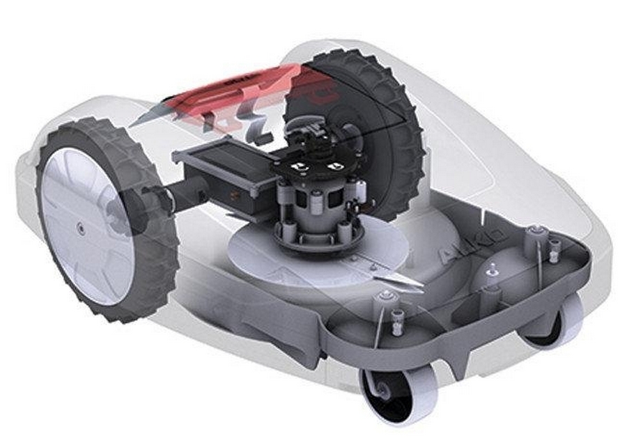 The machines are usually wheeled, equipped with rotating blades for cutting grass and have a high-strength and shock-resistant housing. The case is designed to protect the internal components and mechanisms of the device from negative external influences, and also prevents possible contact of a person or animal with rotating knives. The robot body contains: