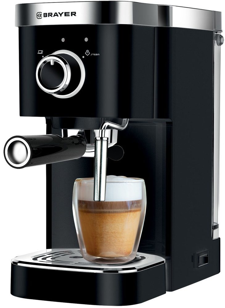 The body of the device is made of black plastic and stainless steel. Metal horn. The operation is simple, touch-type, the buttons are equipped with indicators, so it is easy to track the stages of preparation of the drink.The surface where the cups are placed is not scratched and is resistant to minor mechanical damage, due to which BRAYER BR-1101 retains its aesthetic appearance for a long time. The average cost is - 9 590 rubles.