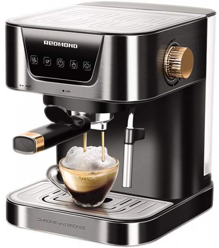 Another worthy sensory coffee maker from the REDMOND company. The water container holds 1.5 liters, which is enough to make 12 Americano cups. The pressure level is standard, 15 bar. The volume of portions of the drink can be changed at your discretion, and the preset setting can be saved in the device's memory, which eliminates the need to re-configure each time you access the coffee maker. The design of the model allows you to prepare latte and cappuccino, with the help of the cappuccino nozzle, soft milk froth is whipped. In addition, "REDMOND RCM-M1513" is equipped with a table for warming cups, and also provides an opportunity to prepare two portions of a drink at the same time. The set includes a recipe book, collected a variety of recipes for a coffee drink. The average price of the model is - 10 699 rubles.
