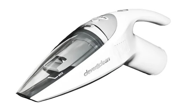 Manufacturer - Clever & Clean (China). Portable model, battery powered. Plastic body in white, steel color.