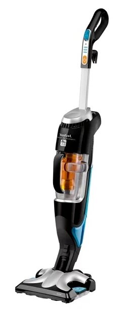 The manufacturer is the popular Tefal company (France). 2 in 1 format - upright vacuum cleaner, steam mop. Color - black, gray, blue. Cleaning all hard surfaces: Clean & Steam nozzle (vacuum, steam), telescopic stand.